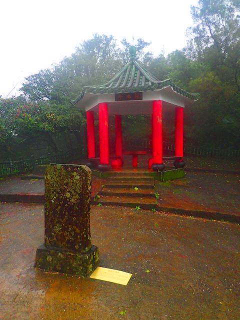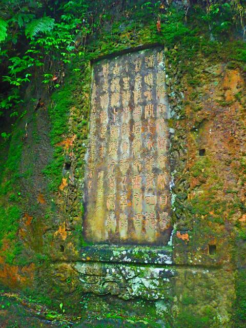 In front of the shelter is a well-weathered stone tablet, which looks rather like a tombstone. It is in fact one of Taiwan’s earliest surviving examples of ecological awareness, dating from the same time as the Golden Letters Tablet nearby, and elaborately engraved with calligraphy (now badly eroded) requesting that travelers resting on this spot don’t remove (for firewood) the shade-giving trees that once covered the area.