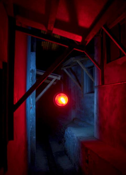 Here and There is the title of this year’s Treasure Hill Light Festival, which features 10 artists and an extensive program of performances, workshops, and an open air market. “After living here for several years, they fought and resisted, exhausted but finally able to stay,” writes co-curator Ho Yu-kuan (侯昱寬) in his curatorial statement, which refers to the history of Treasure Hill as a former cluster of illegal residences. “The footprints we have left behind are not enough to validate our existence, as they emerge here but also elsewhere, simultaneously,” Ho continues. Considering alternative understandings of time and space, such as parallel universes or time-space displacement, the exhibition contemplates upon the past, present, and future of the village and its role in greater society. Wu Chuan-lun’s (吳權倫) project focuses on the culture of potted plants in Taiwan. Having studied the potted landscapes of various local households, Wu creates a series of ceramics are modeled after the blue industrial containers commonly used as plant pots in Taiwan. Hung Yun-ting’s (洪?婷) Shadow manipulates light and darkness in a mezzanine plaza and takes on the concept of shadows as a metaphor of our shared history and collective lives. Bangkok-based Treasure Hill artist-in-residence Liam Morgan presents a spatial installation of rapid strobe lighting in a three-room house unit. The pulsating light creates contradicting effects of both anxiousness and calmness.