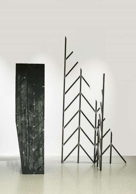 This weekend, Slovakian artist Stefan Papco will open his solo exhibition Vertical at Bluerider Gallery. The show takes on the theme of mountain climbing as a physical and mental discipline that the artist attempts to mediate through sculptural forms. A mountain climber himself, Papco perceives each climbing experience as a choreographed performance of movements along rocky surfaces. In this exhibition, the artist employs a variety of sculptural materials, including metal casts, concrete, wood, silicon and beeswax to create dynamic combinations of material qualities. Miroslav (2013) is a metal cast of a heavily coated man sitting on the edge of a pedestal with his eyes peering upwards. His coat is nuanced with delicately folds and turns, which creates an illusion of softness in the hard metal cast. Left Edge Tower and Along the Right Edge of the Huge Corner (2014) abstract mountainous landscapes into minimalistic geometric patterns. Such creative processing of terrain is also integral to the art of mountain climbing, which involves analyzing strategic routes along organic formations.