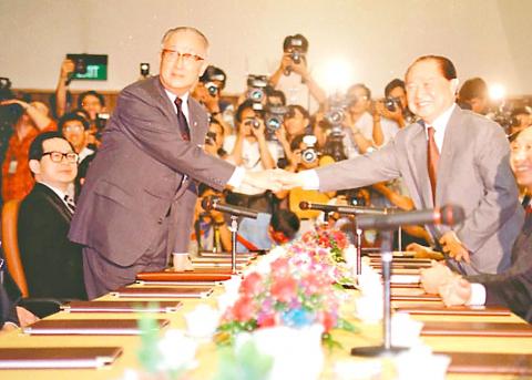“Because the antagonism between the two sides hadn’t really subsided, the Koo-Wang talks were more symbolic than practical, especially since it would be impossible to resolve all the issues during initial contact,” writes Chu Kuo-hua (初國華) in the study, Cross-Strait Negotiations Under an Asymmetrical Power Structure (不對稱權利結構下的兩岸對談). The goal was not to achieve concrete results, but to open the door to further negotiations.