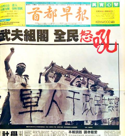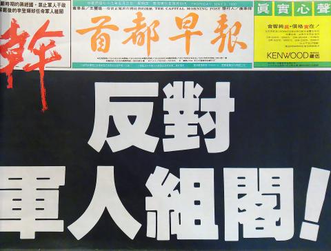 Hitting the stands on May 3, 1990, that day’s edition spent six full pages slamming newly inaugurated President Lee Teng-hui’s (李登輝) nomination of four-star general and then-minister of national defense Hau Pei-tsun (郝柏村) for his new administration’s premier.