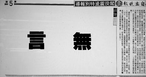 That day’s editorial in the paper consisted only of two large characters: wuyan (無言, or “speechless”).
