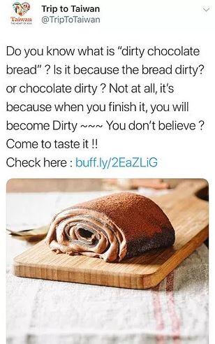 One, according to Tricky Taipei, promoted something called dirty bread (髒髒包), a fad in Asia that has become popular in Taiwan. The bread gets its name from the fact that your hands and face become dirty from the cocoa powder while eating it.