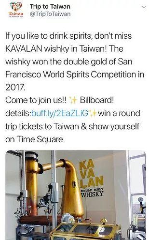 Among the questionable social media posts was one on Twitter featuring a photo of Kavalan Whisky with the spirit incorrectly spelled “wishky” two times, according to a screen capture on Tricky Taipei.