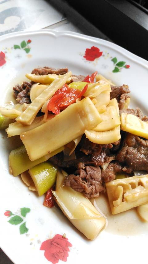 This is a stir fry that does not require high temperatures and as such is a bit of a cheat, but as nice as a good night market fry up can be, the oily smoke that this kind of cooking generates at home is not very nice. I find myself doing things at much lower heat these days, and while textures and flavors are different, this is not altogether a bad thing. The tenderloin in this recipe actually tastes better without having to hit a wall of heat when it goes into the pan, and after boiling, the bamboo is already cooked, and only needs the heat to absorb flavor. If you have already prepared the bamboo shoots in advance, the whole thing takes less than 15 minutes to put together and is splendid served with white rice.