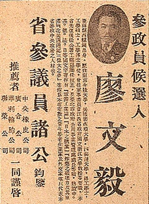 In January 1947, the US-educated Liao published an article in Pioneer (前鋒) magazine, proposing a Federated States of China within which Taiwan could enjoy complete autonomy.