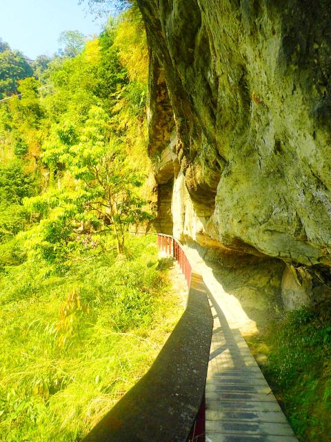 A wide, wooden boardwalk makes for an easy, relaxing stroll up the impressive gorge. Into the depths on the right about 10 minutes into the walk, is the impressive 50m drop of Zhongshan Waterfall (中山瀑布) several hundred meters below. It’s an impressive drop, but to see it entails some serious river tracing.