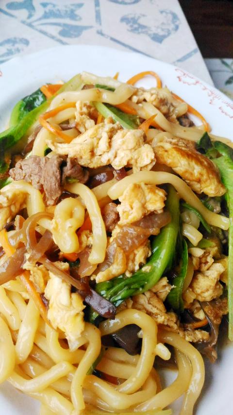 It is a common misconception that the “mooshu” (木須) in the name refers to wood ear fungus, which is one of only three fixed elements in this dish. The other two ingredients being eggs and noodles. Of course, as any Taiwanese person with gastronomic pretensions knows, the reference to “wood” in “mooshu” is a complete red herring, and will tell you in tones that conveys the profound mystery inherent in the complexities of Chinese culinary culture that mooshu noodles is nothing more than fried noodles with eggs.