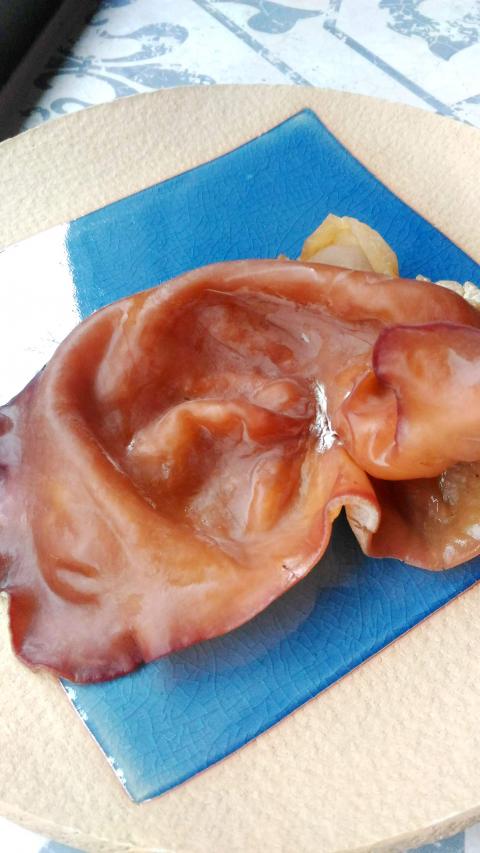 The wood ear fungus has all the notable features of a modern health food. This starts with its low caloric count, followed by its richness in amino acids, vitamins, minerals and antioxidants. To obtain its benefits most directly, Taiwanese cooks make the gelatinous ear into a sweet thick soup that can be drunk as a tonic or desert. The most common appearance of wood ear fungus in Taiwan is in the ubiquitous sour-hot soup (酸辣湯) that is inevitably served at dumpling houses as well as northern Chinese eateries. It also makes an appearance as a cold dish (very much an acquired taste) and in the classic dish of mooshu fried noodles (see recipe).