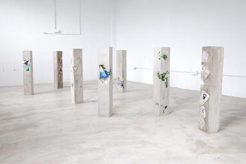 Currently on view at G.Gallery is a two-person show Now and then, I find myself in a plain, and alter with a breeze, a glance by Sean Tseng (曾彥翔) and Sara Wu (吳依宣), each a recipient of the Judge Award at this year’s Wonder Foto Day, an international photography competition and fair held annually in Taipei. The works of Tseng and Wu surpass the conventional frameworks of photography and reflect upon everyday environments through multimedia practices, writes the gallery in a press release. Tseng’s A Walk in the Forest combines photography with sculptural forms. Inspired by high-rise buildings, the work consists of a group of cement pillars embedded with printed photographs of nature. The encounter of cement and photography creates a curious sculptural aesthetic of vulnerability and strength, nature and civilization, image and object. Wu’s The Dimension of Texture is a series of photographs that capture markings on used objects and superimposes them on different surfaces. The generation of new images opens up the possibility of new contexts and meanings through which the photographed subject can be understood, thus creating a connection between different realities and illusions.