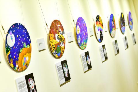 The artworks are by students at four local elementary or junior-high schools that are partner schools with the “University Social Responsibility” project, which is led by associate professor Lin Ya-tin (林亞婷), as well as established Taiwanese and foreign artists.