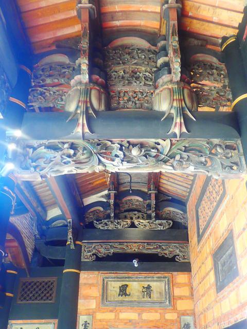 The rich, orange brickwork of the Lee Teng Fang Mansion has been designated a Grade Two historic landmark by the government and, according to the guide who showed us around, it is one of Taiwan’s top 10 historic houses. It’s certainly among the finest surviving examples of the nation’s Hakka sanheyuan (三合院), a residence consisting of structures surrounding a courtyard on three sides.
