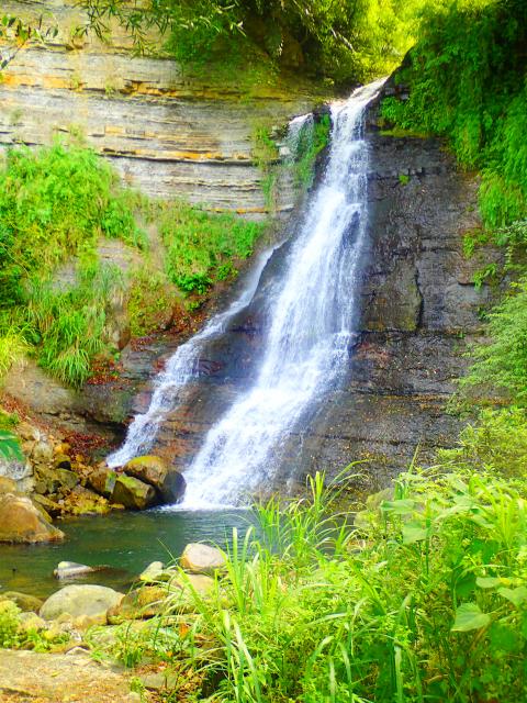 The waterfall is also perhaps the best place in Yangmingshan to see the original sedimentary rock of the Wuzhishan (五指山) range, which elsewhere hereabouts is covered by volcanic (igneous) rock, thick undergrowth or both. The cliffs to the left of the waterfall display some fine strata lines.