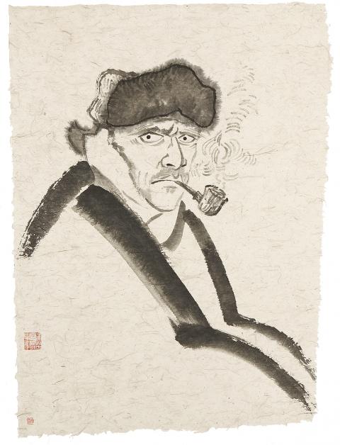 Van Gogh / Bodhidharma (張宏圖: 梵高/達摩) is a solo painting exhibition by Chinese artist Zhang Hongtu (張宏圖) at Tina Keng Gallery. The China-born, New York-based painter draws on his experiences in China and combines that with his interest in European and American art. His works “transcend and escape the limitations of concepts such as east, west, realism or conceptualism,” writes the gallery in a press release. His new show features 39 ink-on-paper drawings created between 2007 and 2014. In this series, Zhang references portraits of Vincent Van Gogh and transforms him into a Zen Bodhidharma. “Van Gogh described himself as appearing like a Japanese monk in his own paintings,” writes the gallery in a press release. Extending from this self-description and Van Gogh’s intense interest in Japanese art and Zen Buddhism, “Zhang Hongtu detected a possibility of cultural coalescence between the two and applied a Zen painting style to re-create Van Gogh’s portraits,” writes the gallery. Each painting in the show is coupled with a QR code that provides information on the Van Gogh portraits Zhang references.
