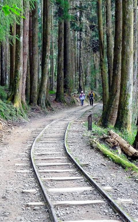 Fortified by turnip-and-mushroom soup and “rice sausage” (糯米腸), I set off down the trail. Very soon, I was walking alongside narrow-gauge railway tracks. Just before World War II, Alishan’s logging railway was extended deep into the mountains to better exploit the area’s cypress stands. By hiking-path standards, the first 3.7km of the Tefuye Historic Trail is broad, straight and fairly flat, because it was cut for trains rather than humans. This railroad, a spur of the Shueishan Branch Line (水山線), operated until the late 1970s.