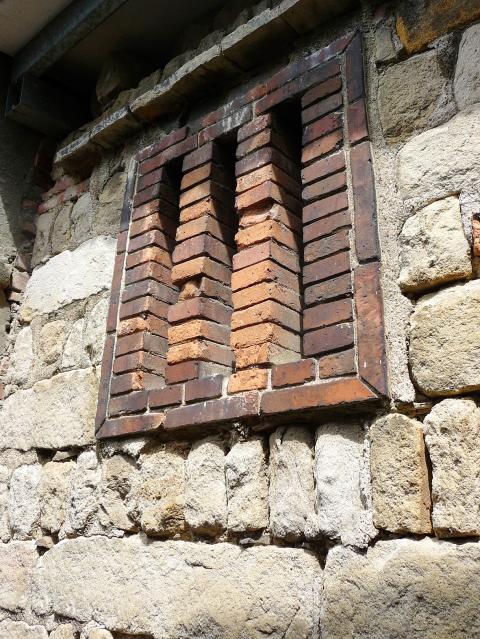 The wall that separates the police complex from Alley 2, Lane 97, Guisui Street was built sometime before 1909 using stone blocks recycled after the demolition of Taipei’s city walls.