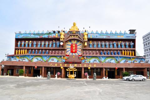 Visible if you’re traveling by train between Tainan and Kaohsiung, but hard to see if you’re getting around by other means, is the four-story facade of Longfatang (龍發堂). It’s a fabulously gaudy array of yellow, blue and brown statues, topped by a golden seated Buddha.