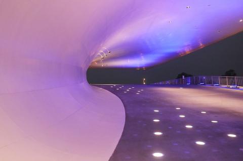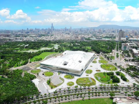 However, they were not the only ones looking very pleased. Dignitaries ranging from the Minister of Culture Cheng Li-chiun (鄭麗君) and Cloud Gate Dance Theatre (雲門舞集) artistic director Lin Hwai-min (林懷民) to representatives of all the firms involved in the construction and stage and lighting designer Lin Keh-hua (林克華), as well as many Taiwanese performers and theater folk, as well as thousands and thousands of Kaohsiung residents who bought tickets for the opening concert or packed the parkland to the south of the structure to watch the Arts for the People show performed on the center’s outdoor theater where its roof dips down to touch the ground.
