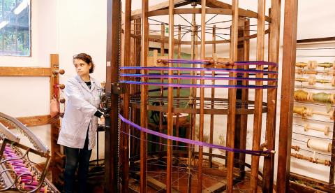 Its looms date back to the 17th, 18th and 19th centuries, but the jewel at its heart is a machine to unwind the reels of threads, designed by Renaissance genius Da Vinci, who died in 1519.