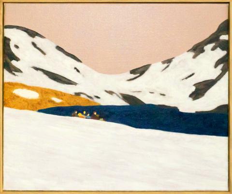 Kaohsiung’s Yiri Arts Pier-2 is presently hosting a solo exhibition by Spanish artist Guim Tio Zarraluki. Playing with Fire features new paintings that explore the relationship between humans, nature and society. This appears to be a new direction for the artist, whose earlier works focus on portraiture that examines the human condition. Zarraluki’s figurative work involves manipulation of fashion magazine images with chemicals and oil pastels to create stylized figures with ironic and exaggerated features. By contrast, Zarraluki’s new series of paintings depict small representations of humans traveling amid vast landscapes. This change in perspective seems to suggest a shift in Zarraluki’s ways of seeing. “In the past, Zarraluki had asked, where do we come from? And now, He desires to know where we will we go?” writes the gallery in a press release. La Pujada is an oil painting that depicts three figures walking through a white, minimalist mountainscape. The figures leave behind a trail of footprints that trace their trajectory uphill. In Tavascan , a lone figure walks through a snowy scene intersected by patches of black terrain towards the other side of the mountain.