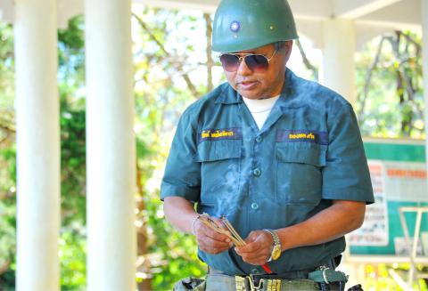 Wearing his father’s fatigues and KMT helmet, Chang Tai-hua (張泰華) has stood guard over Tuan’s grave for the past 18 years. Now in his 60s, Chang provides visitors with incense and recounts the story about how Tuan was able to lead his battle-weary troops to this area to find some semblance of stability.
