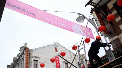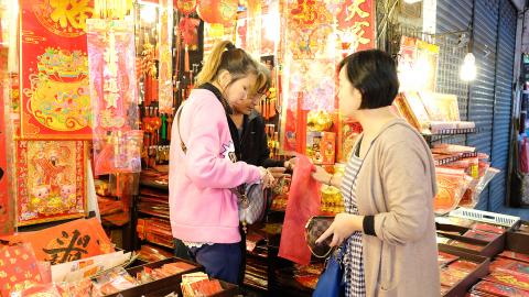 Outside, hawkers’ cries and decorations spill out from both sides of the street. The old western part of the city, where long-established shops still sell traditional goods such as tea, confectionery and dried foods, is the original location of Taipei’s Lunar New Year market. This year’s market is expected to draw as many as 300,000 revelers and will stay open right up until Lunar New Year’s eve on Feb. 3.