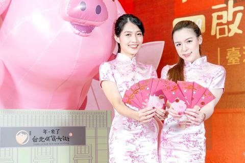 The mascots will feature on special coins and red packets to be given out by Mayor Ko Wen-je (柯文哲) at scheduled times during the market. Vistors who download the Taipei Friendly Go! mobile application will also be able to defeat the Nian Shou and win prizes through an augmented reality game set in Yongle Market, the designated lair of the beast.