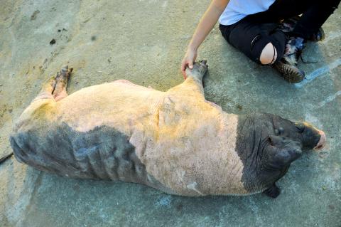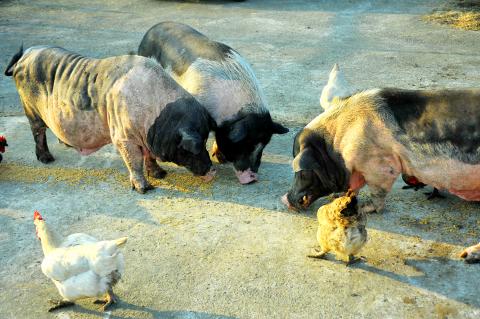 Having been in the business since he was 16 years old, Lo gave up eating meat and abruptly ended his career about 10 years ago. He still owns pigs — 105 of them along with two dairy bulls, a handful of goats, a dog and a number of ducks, chickens and other birds — at his former farm that he’s converted into Pig Heaven (豬豬天堂), an animal sanctuary and petting zoo.