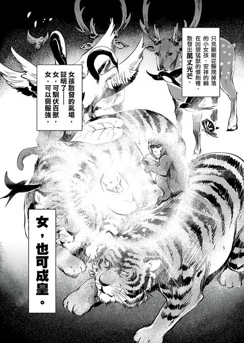 In Conquerer of the Seas Emperor Ing (霸海皇英), published in August 2016 by Wei Tsung-cheng (韋宗成), a young girl named Ing (瑛) grows up on a patriarchal island-nation caught in the shadow of a dictator surnamed Chiang (蔣). At her birth, she radiates a feminine glow that literally tames wild animals. She grows up to overthrow the oppressive forces that terrorize her people.