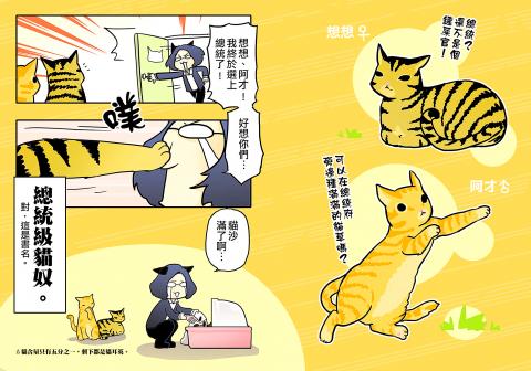 Han said that Stupid Sheep’s comic Presidential Slave to Cats (總統級貓奴) is an attempt to make Tsai more approachable by portraying her in the cute likeness of a cartoon character. The comics highlight Tsai’s devotion to real-life pet cats Think Think (想想) and A-tsai (阿才). While this approach is lighthearted, Han noted that the reality is sobering.