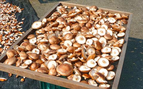 Each mushroom operation is draped with black canvas to keep out sunlight. But after harvesting, some of the fungus crop is sun- and air-dried next to the road. Between the early 1960s and the late 1970s, Taiwan was the world’s no. 1 source of canned and bottled mushrooms. These days, most of the mushrooms grown in Taiwan are eaten in the country.
