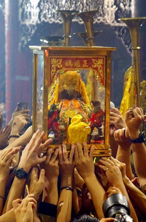 But who is Matsu and why is she the perennial favorite that politicians call on to insinuate the deity’s virtue into their campaign? The various names attributed to Matsu throughout history — shaman (巫), filial lass, celestial consort (天妃), celestial empress (天后), avatar of the Buddhist bodhisattva Guanyin (觀音), divine matriarch in heaven above (天上聖母) and, in the past few years, goddess of cross-strait peace — illustrate her rise to a pan-Chinese cultural symbol associated with compassion and protection, with elements of Confucianism, Buddhism and Taoism.