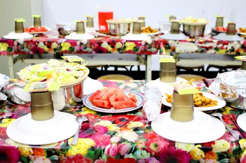 Following Islamic custom, the Grand Mosque provides complimentary iftar — a communal evening meal to break fast — throughout Ramadan. Donations from the congregation, ranging from NT$30,000 to NT$50,000, cover the cost of each meal. On the day that I visit, a group of Pakistani volunteers are preparing curries, salad, rice and flatbread.
