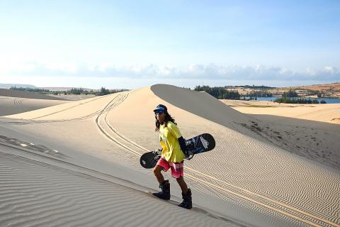 Though Vietnam’s northern Sapa mountains see the occasional dusting in winter months, there are no snow slopes for aspiring skiers and snowboarders in the tropical country. Instead, Binh boards on the undulating sand dunes of Mui Ne, better known for picture-perfect vistas and breakneck ATV rides on offer for tourists in the sunny southern province of Binh Thuan.
