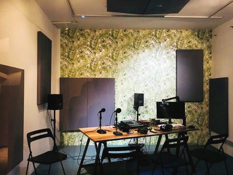Future Memories I: Talking Drums Radio/Future Excavation 2.0 (未來回憶錄三部曲之一: 話鼓電台/未來出土2.0) is a joint presentation of two projects exploring the art of sound, currently on view at TheCube Project Space (立方計畫空間). Initiated by the gallery, Talking Drums Radio is a multi-faceted program that utilizes radio broadcasting and sound as creative media. According to the gallery, the title refers to Canadian media theorist Marshall McLuhan’s metaphor of the radio as a talking drum, with the capacity to re-tribalize humankind by building consensus among different individuals and groups. The social power of radio was suppressed during Taiwan’s martial law period, during which strict broadcasting regulations were put in place. Acknowledging this history, the project considers broadcasting as a technique that speaks to the relationship between humans and technology today. A recording studio was constructed for 20 invited artists to create experimental sound works for the project’s online radio station. Future Memories 2.0 is a sound installation by Berlin-based artist Shen Sen-sen (沈森森). In this piece, an artificial voice recites the Biblical story of Genesis while playing out futuristic scenarios involving humans and artificial consciousness.