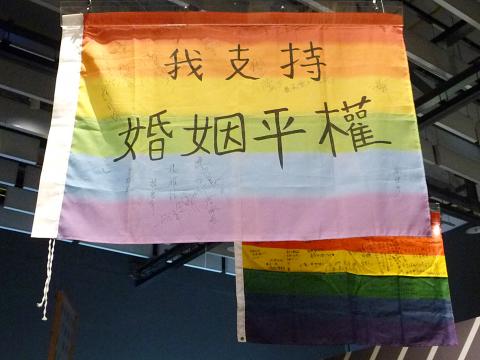 The section devoted to gender rights and marriage equality is, of course, much more recent, and veteran LGBT rights campaigner Chi Chia-wei (祁家威) was one of the guests-of-honor invited to attend the exhibition’s official opening. Two rainbow telephones on display aren’t artifacts of the struggle for acceptance, however, but devices through which visitors can listen to recorded oral histories of four people talking about their role in the LGBT movement.