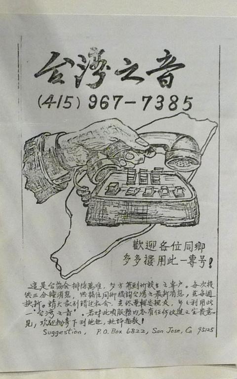 The exhibition includes a lithographic machine used by Taiwanese in Belgium to print leaflets and the Voice of Taiwan (台灣之音) cassette tapes through which Taiwanese living in North America shared uncensored news about events in the country. By calling one of more than a dozen telephone numbers, someone in Canada or the US could listen to the latest recorded broadcast.