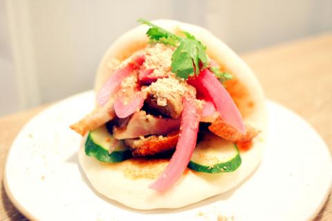 Sliced pork and kimchi (NT$220) also make perfect sense as guabao filling, together with a homemade Korean-style honey and chili sauce. And despite their fluffiness, the pristine white buns stand up respectably to the saucy fillings.