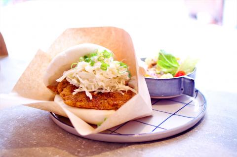 The usual fatty pork is best traded in for lean, tender chicken breast served two ways — with a homemade mala spicy sauce and coleslaw (NT$230) or with a sweet glaze and caramelized pineapple ring (NT$220). Both versions, which come with a side salad, are mouthwatering and unexpectedly satiating.