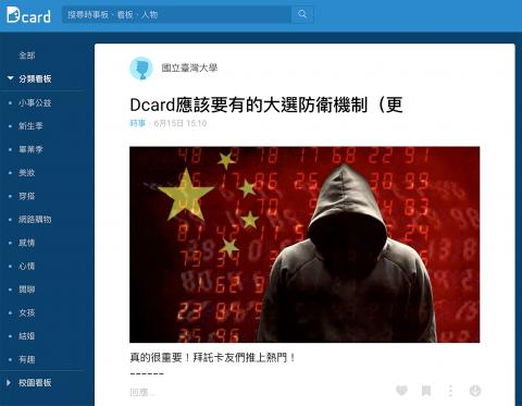 Chen is not alone in her concerns about anonymity. On June 15, an article titled “Dcard should have defense mechanisms prepared for the presidential election” (Dcard 應該要有的大選防衛機制) was top-trending on the Web site’s feed.