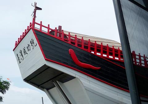 The ship’s maiden voyage took place in December 2010, and there were plans to sail it all the way around Taiwan, then onto Hirado (平戸市), the city in Nagasaki Prefecture where Koxinga was born in 1624. It was also expected to call at Penghu, Kinmen and Quanzhou (泉州) in China’s Fujian Province. However, this grand tour was curtailed after the ship’s 28m-tall mast broke. Replacing the mast was a major part of the 2015-16 restoration that preceded its installation on dry land.