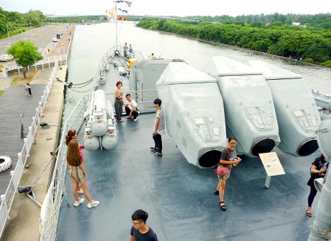 Currently, almost every part of the vessel above the waterline is open to visitors. The frames of the major weapons systems — among them the five-inch forward gun, the Hsiung Feng I anti-ship missile launcher, the depth-charge release rack and the anti-submarine rocket launcher — have been left in place.