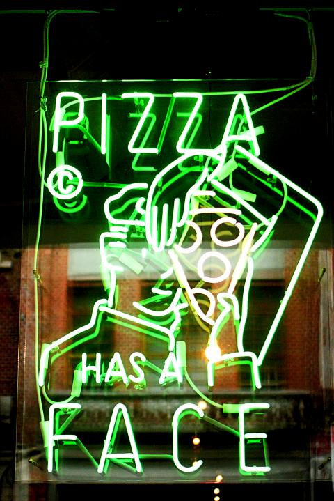 Pizza Has a Face’s 12-inch thin-crust pies may be more New York than Naples, but the menu is nonetheless organized around the tricolor Italian flag.