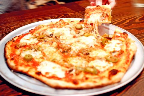 Red-faced pizzas have a tomato base and include the classic marinara (NT$200) and margherita, known here as the Brooklyn (NT$280). The punchy tomato sauce stands up well to assertive toppings, such as the Django’s (NT$450) fennel sausage, pickled jalapeno peppers and rosemary. The combination is spicy, funky and almost reminiscent of a Thai curry.