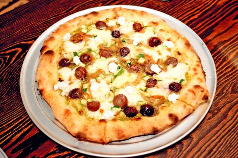 Among the green pizzas is one of the most well-balanced and satisfying vegetarian versions I’ve had — the Black Friar (NT$420), topped with creamy mozzarella, sweet caramelized onion, zucchini and dabs of fresh ricotta, all punctuated with bursts of tart grilled grapes.