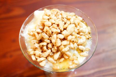The yogurt with puffed rice and honey (NT$50) will be a source of nostalgia for locals, with little kernels that are malty, fragrant and an unexpectedly good accompaniment to natural (that is, unstrained) yogurt. Gym-goers might also be interested in a bottle of protein-rich whey liquid (NT$70).