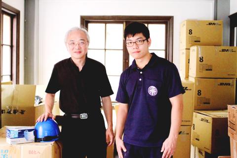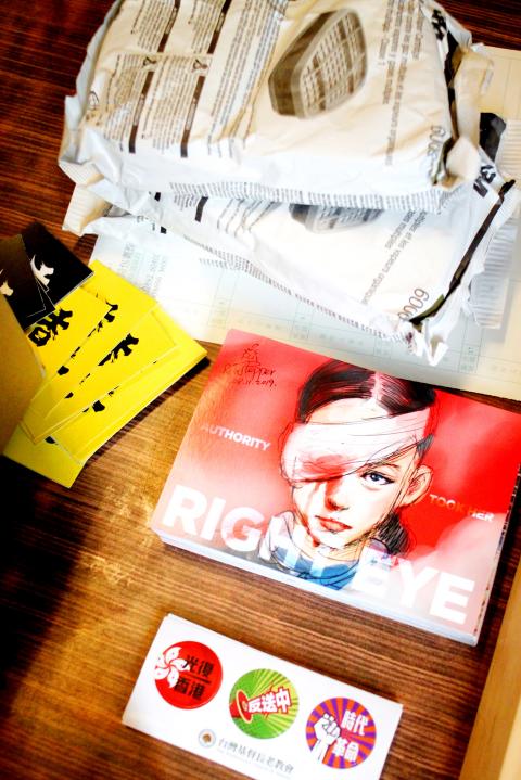 On Monday — the 100-day milestone of the protests — Lin was at Che-lam Presbyterian Church (濟南教會) next to the Legislative Yuan, sorting boxes of donated protest gear bound for Hong Kong. He bantered in Cantonese with a young woman who had flown to Taipei to pick up the boxes and courier them back to the city.