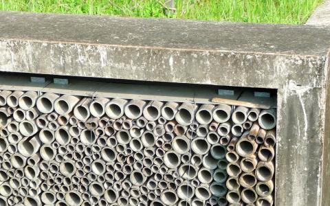 The bamboo wall, a semi-underground walkway lined with bamboo sections, does exist as envisaged. The bamboos were intended as receptacles where visitors could place flowers to honor the dead.