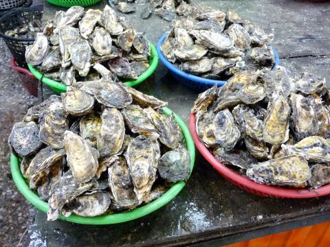 The shallow waters just off Budai are dotted with bamboo platforms on which oysters are raised, and on busy days visitors to the market get through hundreds of oyster omelets (蚵仔煎). Identical omelets are available in night markets throughout Taiwan, but deep-fried oyster-filled bao (蚵仔包) are a true Budai specialty. One bao is a substantial snack; eat two and you mightn’t need any dinner.