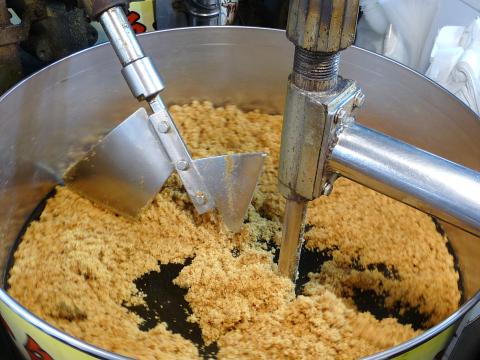 If you’ve never had it, dried fish floss (魚鬆, yusong) is somewhat like the super-fine shredded pork that’s often added to congee. This product can be made from different fish, including marlin (the floss is a rich shade of orange) and bummalo (a lighter, sandier color). A couple of vendors manufacture small amounts on the spot.